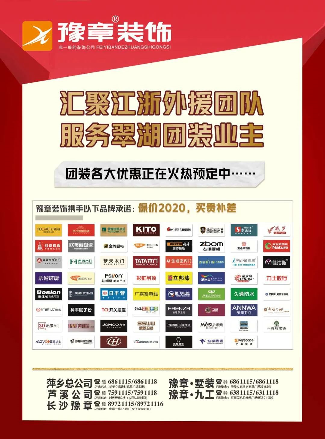 萍鄉(xiāng)市豫章裝飾設(shè)計(jì)工程有限公司成立于1997年,是一家集室內(nèi)外裝飾設(shè)計(jì)、施工、建材,售后服務(wù)于一體的專業(yè)性裝飾公司,凝聚了一批專業(yè)的設(shè)計(jì)與施工隊(duì)伍,秉承“設(shè)計(jì)專業(yè)化,施工規(guī)范化,價(jià)格透明化,健康環(huán)?;钡难b修理念,持續(xù)不斷的優(yōu)化服務(wù)質(zhì)量,咨詢熱線:0799-6861118