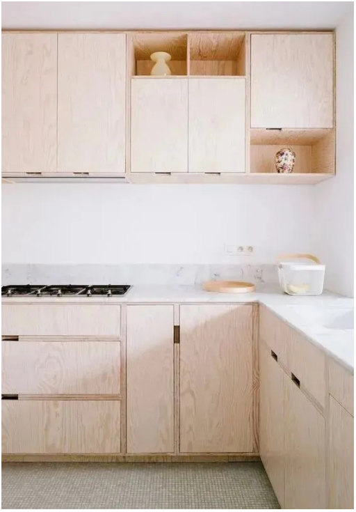 不過位置卻有所變動(dòng),吊柜的留空位置多在吊柜下部,而地柜的留空則在地柜的上部。畢竟,合適的高度可以保證家人在取用物品時(shí)足夠輕松,不必踮腳彎腰。